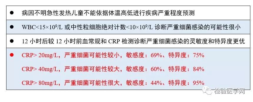 谈到C-反应蛋白(CRP),检验人都不陌生,这是一个常在各类检验报告单中出现并被临床医师所重视的项目,基本应用到与炎症相关的所有科室中,在检验界可谓是“炎症”的代名词。不仅临床上被用作感染类型和炎症严重程度的判断,也常被用作其他的疾病的辅助诊断和病程监控。如在类风湿性关节炎判断上作为诊断指标之一;患者术后用作感染与并发症的监控;抗生素的用药指导和疗效观察;超敏CRP近年来更是应用到心血管风险评估中作重要指示作用。 血常规中白细胞计数(WBC)及分类比例(DC)对于临床鉴别感染来说是最基本、最常用的指标,升高和降低的幅度也被检验医师和临床医师用作诊断疾病的手段。但血常规由于个体差异,影响指标的因素极多,且患者不同的疾病、甚至是不同的生理状态会引发血常规发生改变,其在感染方面诊断特异性差,容易出现误诊情况。若单凭血常规来判定患者的炎症类型和程度是不够严谨和科学,随着CRP在炎症监控领域中被广泛重视,能辅助血常规进行感染炎症的判断,因此也就出现了血常规与CRP作为联合指标作综合性判断。 基于科室可能同时存在不同厂家的仪器,科室自身也会建立自己的实验室参考标准,对血常规、CRP的值变化的多少在感染疾病中的意义,不同科室临床医师的看法存在不一致。以下囊括大部分在感染疾病上的专家共识意见中针对血常规和CRP的临床应用。 感染类型诊断 在《全国临床检验操作规程(第4版本)》[1]中临床检验医师对CRP在感染中的诊断应用: 评语:明确了对于CRP大于100mg/L甚至更高的患者,罹患细菌感染的可能性较高,对于CRP在小于50mg/L,需要综合其他检测指标和体征进一步判断是否是轻微细菌感染或病毒感染甚至是其他疾病。 同样在2017年最新的《感染相关生物标志物临床意义解读专家共识》[2]也详细介绍了白细胞计数和分类、及CRP变化情况在感染中的应用。 评语:该共识详细说明了血常规变化情况提示不同疾病的发生可能,对于CRP的值也明确了值的多少对于感染类型和感染程度的指示,但不管血常规还是CRP诊断需进行因素影响的排除。 儿童发热诊断 基于幼龄儿童急性发热症状不明显,病因复杂等特点,《中国0至5岁儿童病因不明急性发热诊断和处理若干问题循证指南(标准版)》[3]指导了0-5岁儿童依据血常规和CRP对不明病因急性发热的诊断。 评语:此共识在血常规和CRP中值变化的针对不明发热儿童严重性细菌感染进行判断。但涉及感染类型以及是否存在局灶或浅表感染并没有作明确提示,这与低龄儿童体征和血液指标变化不明显有关。 社区获得性肺炎诊断 欧洲《2011年成人下呼吸道感染诊断指南》[4]对于社区获得性肺炎(CAP)与其他呼吸道感染的诊断标准: 而我国专门针对肺炎的诊断《2015年中国急诊社区获得性肺炎临床实践指南-诊断篇》[5]出示了实验室检查指标: 评语:下呼吸道感染中肺炎上的诊断一般在门急诊科室进行,以体征、血清学标记物、影像学作为初步筛查,因此也明确不推荐基层医疗机构进行复杂、费用高的病原学等检测作为初筛手段,推荐以血常规联合CRP快速简便的手段辅助进行判断。 脓毒症诊断 在脓毒症败血症诊断方面,《中国严重脓毒症/脓毒性休克治疗指南(2014)》[6]、《新生儿败血症诊疗方案》[7]也同样出示了血常规和CRP的应用价值。 评语:败血症/脓毒症是极其严重的细菌感染,其发病急、进展迅速,伴随着器官衰竭的危险,临床医生以随时对患者血常规、CRP进行检测作为病程变化监控最基本的最常用的手段。患者白细胞会出现上升、下降或正常的不规律现象;而CRP一般在会较高浓度存在。 结语:CRP的检测不仅被用于感染类型的初步判断,也被用于炎症监控和抗生素指导用药,对于如今满目琳琅的CRP检测仪,精准和快速简便产品的已经成为临床医师首选,对于新生儿/儿童或采血不便的患者甚至要求微量样本快速精准检测。如深圳国赛生物特定蛋白分析仪,能做到2μL微量、床旁快速、精准检测赢得广大临床医师的青睐。 【参考文献】 [1]全国临床检验操作规程(第4版本)[M].北京:人民卫生出版社, 2015. 412-413 [2] 感染相关生物标志物临床意义解读专家共识[J]. 中华结核和呼吸杂志, 2017,40(4):243-256. [3] 中国0至5岁儿童病因不明急性发热诊断和处理若干问题循证指南(标准版)[J]. 中国循证儿科杂志,2016, 11(2):81-96. [4] 陈闽江等, 2011年成人下呼吸道感染诊断指南[J]. 国际呼吸杂志, 2012, 32(16):1201-1206. [5] 2015年中国急诊社区获得性肺炎临床实践指南-诊断篇 [6] 中国严重脓毒症/脓毒性休克治疗指南(2014)[J]. 中华内科杂志, 2015, 56(6):557-580. [7] 新生儿败血症诊疗方案(2013)[J]. 中华儿科杂志, 201, 41(12):897-899. 编辑:Nicole 审校:赵三好 |